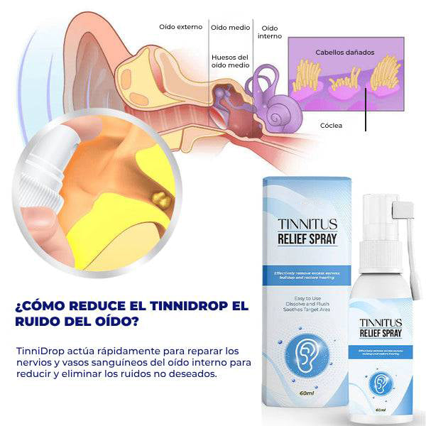 Hearmax™ Tinnitus Relief Spray actúa entrando en el canal auditivo y dirigiéndose a la zona afectada para ayudar a aliviar los síntomas asociados con el tinnitus de oído, como zumbidos, zumbidos, golpecitos y dolor de oídos. Con la ayuda de Hearmax™, las personas pueden decir adiós a los sonidos desconcertantes en sus oídos y experimentar una sensación de tranquilidad.