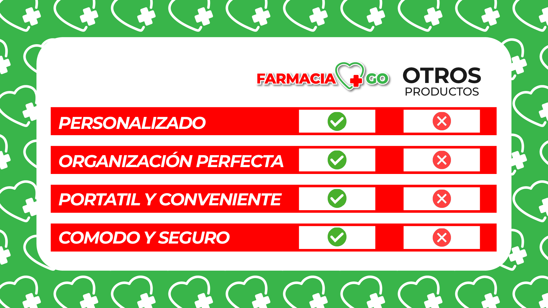 - Perfecta organización: Le permite almacenar sus medicamentos y hacerlos fácilmente accesibles para evitar confusiones y olvidos de dosis.