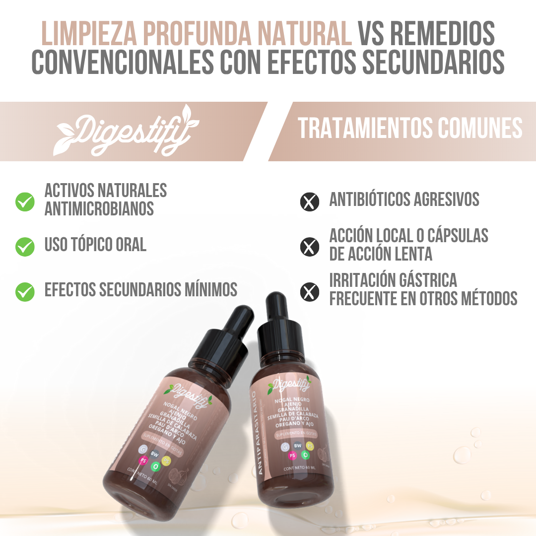 Digestify™ está formulado para proporcionar una desintoxicación completa desde adentro hacia afuera, ayudando a eliminar toxinas acumuladas por el estilo de vida moderno. Con solo unas gotas al día, los usuarios sienten una sensación de ligereza y energía renovada, mientras los ingredientes activos como cáscara de nuez negra, ajenjo y extracto de semilla de calabaza trabajan para mejorar la digestión y el tránsito intestinal de manera suave pero efectiva. Este enfoque permite que el cuerpo recupere su ritmo natural sin la necesidad de dietas extremas ni productos invasivos.