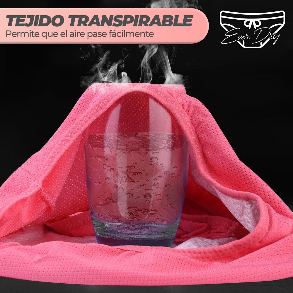 Uno de los mayores problemas durante la menstruación es el mal olor y la proliferación de bacterias. Ever Dry está fabricado con materiales antibacterianos de última tecnología, que no solo previenen la formación de bacterias, sino que también eliminan los malos olores, proporcionando una agradable sensación de frescura y limpieza.