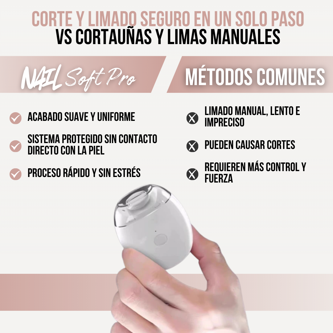 A diferencia de los cortaúñas comunes, Nail Soft Pro™ no corta de golpe ni genera dolor, reduciendo el estrés tanto para el usuario como para el bebé. Su funcionamiento eléctrico y silencioso lo hace mucho más cómodo y seguro. Además, es recargable, portátil y multifuncional, eliminando la necesidad de varias herramientas. No ocupa espacio y se adapta a toda la familia. Un avance real en el cuidado de las uñas, pensado para la vida moderna.