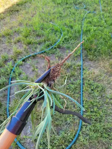 Mientras otras herramientas solo cortan la parte superficial, RootReaper™ extrae la raíz completa, asegurando una limpieza real y duradera del jardín. Su construcción resistente soporta el peso del usuario sin doblarse ni romperse, a diferencia de modelos económicos que fallan con el uso.