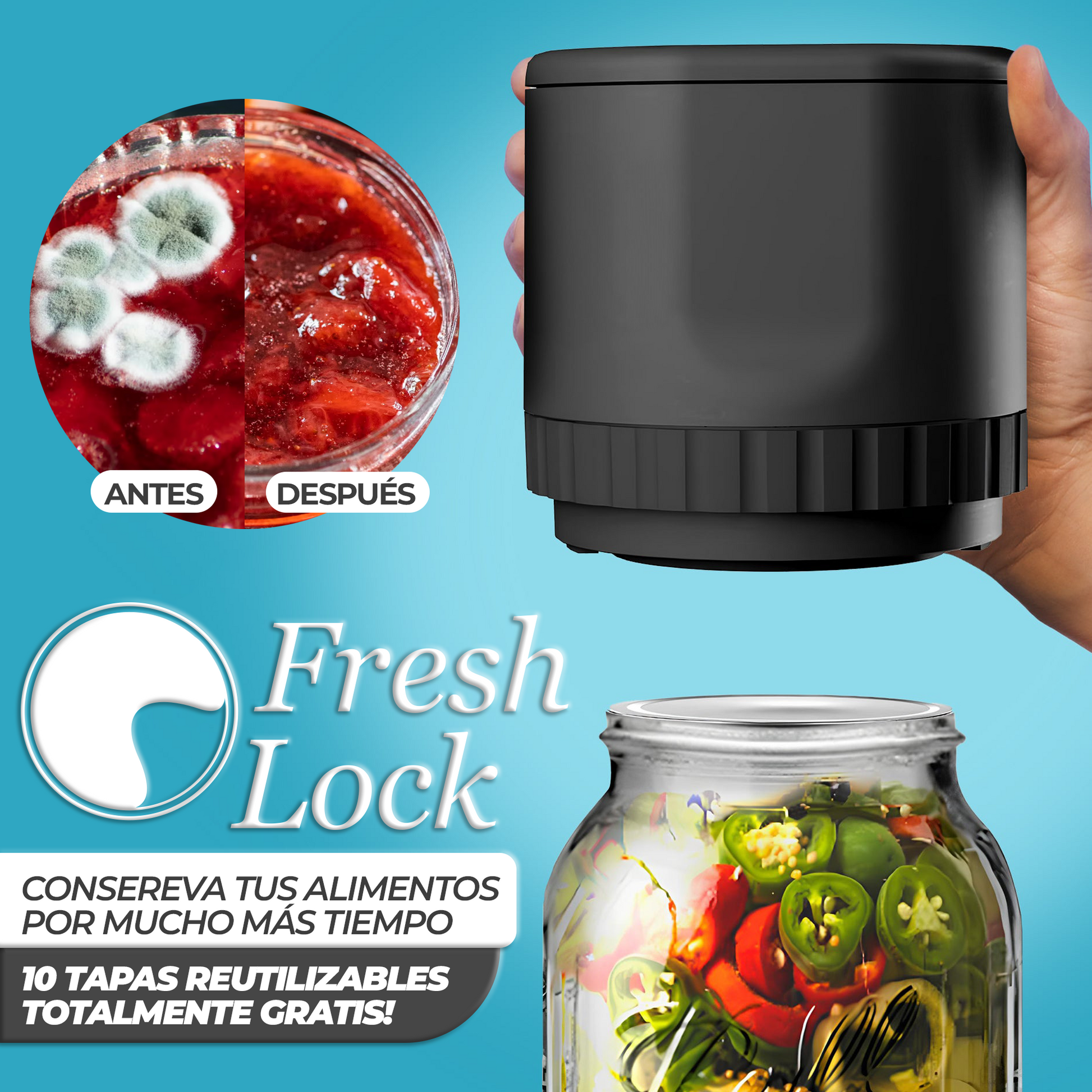 No más preocupaciones por los alimentos que se echan a perder rápidamente. Gracias a su tecnología avanzada de sellado al vacío, Fresh Lock elimina todo el aire de tus tarros, creando una barrera impenetrable que mantiene tus alimentos frescos y seguros durante meses, o incluso años.