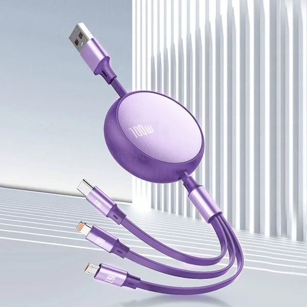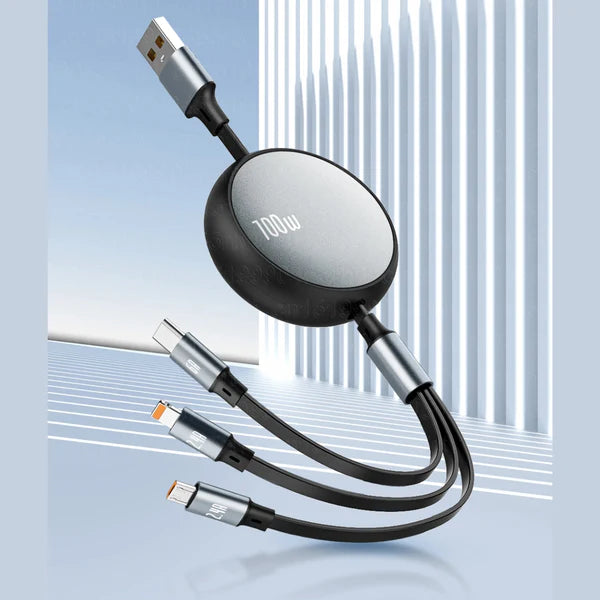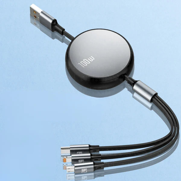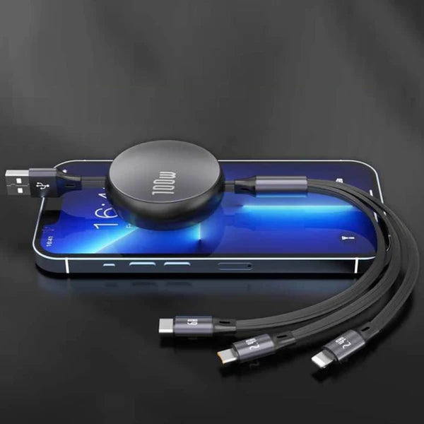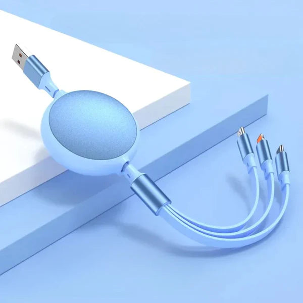 ¡Nunca más te preocupes por los cables enredados! Nuestro cable de carga 3 en 1 te mantiene organizado y cargado.