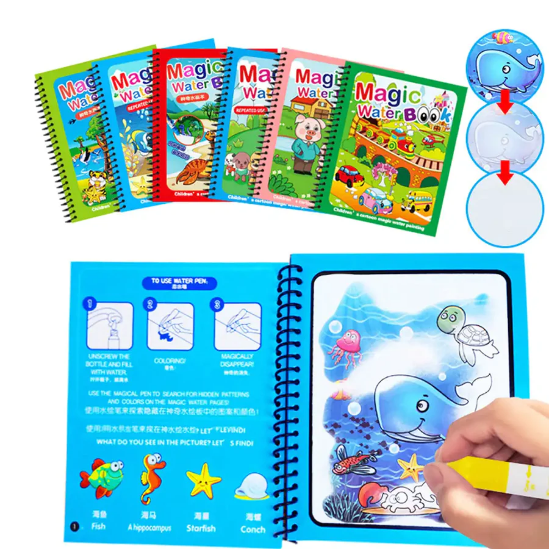 MagicWater™ - Libro reutilizable para niños, que se pinta con agua