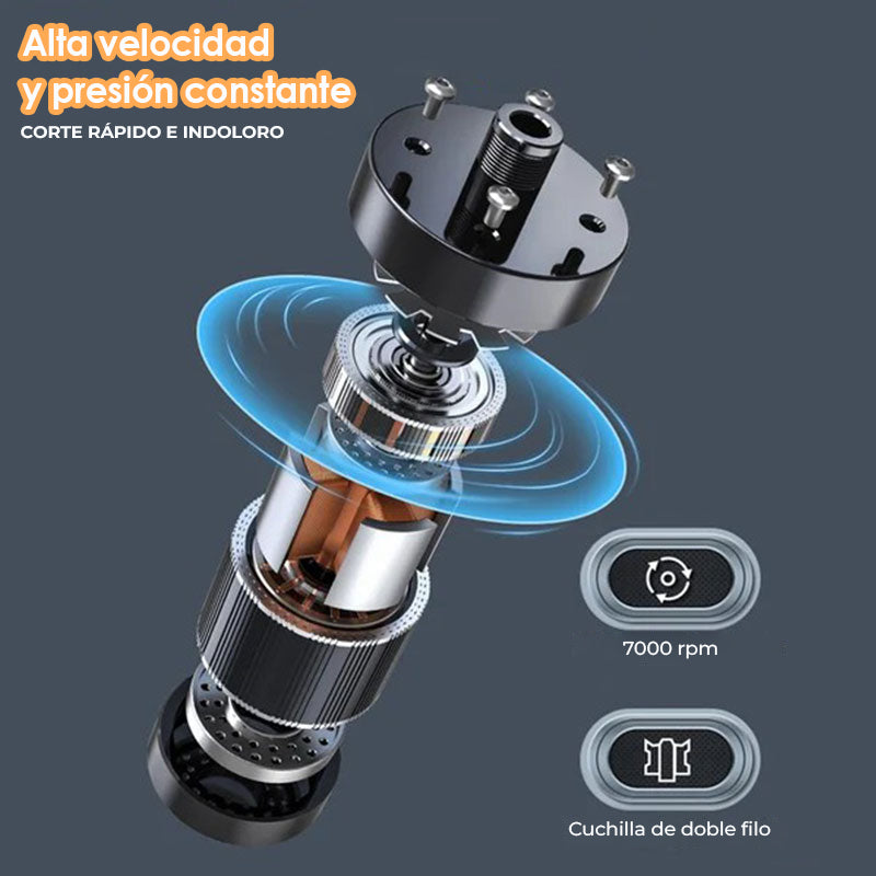 Con un potente motor de 7000 RPM, las cuchillas de doble corte garantizan un resultado impecable. La cabeza de corte plana y redondeada se adapta perfectamente a la cavidad nasal, eliminando los vellos de manera precisa y suave, sin causar molestias.