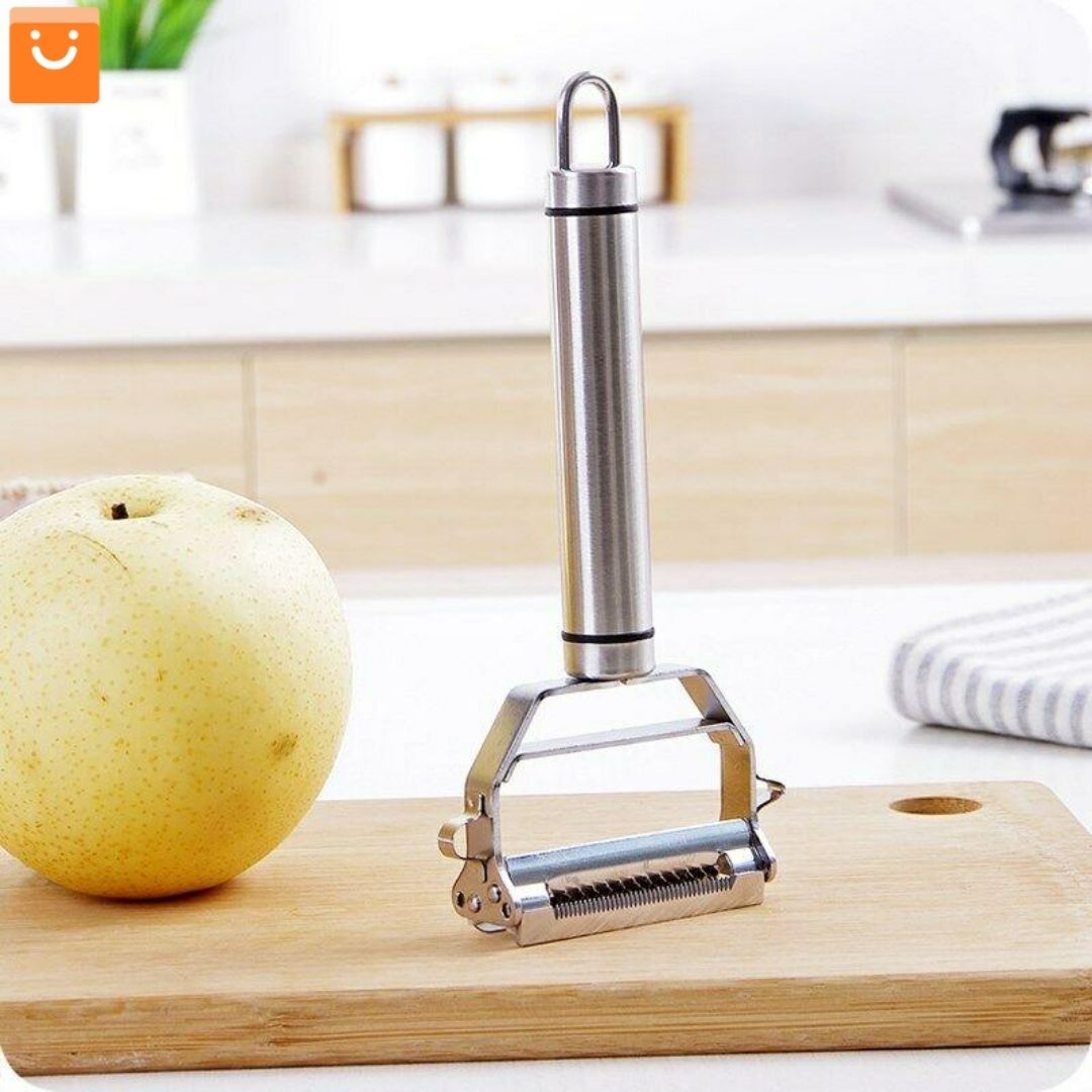 Descubre el Pelador Premium, el utensilio que transformará tu cocina. Cuchillas dobles de acero inoxidable ultra afiladas que permiten un pelado suave y sin esfuerzo. Multifuncional, ideal para pelar verduras y cortar en juliana con un solo giro de muñeca.