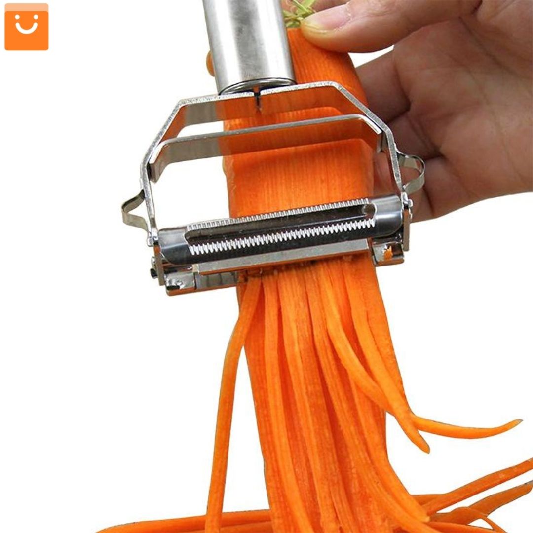 Este pelador cuenta con una cuchilla para pelar verduras y otra para cortar en tiras largas, brindándote versatilidad en tus preparaciones. Ya no necesitarás múltiples utensilios para diferentes tareas. Con este pelador, podrás pelar y cortar en juliana de manera rápida y sencilla, ahorrando tiempo y espacio en tu cocina. Convierte tu rutina de cocina en una experiencia más eficiente y placentera.