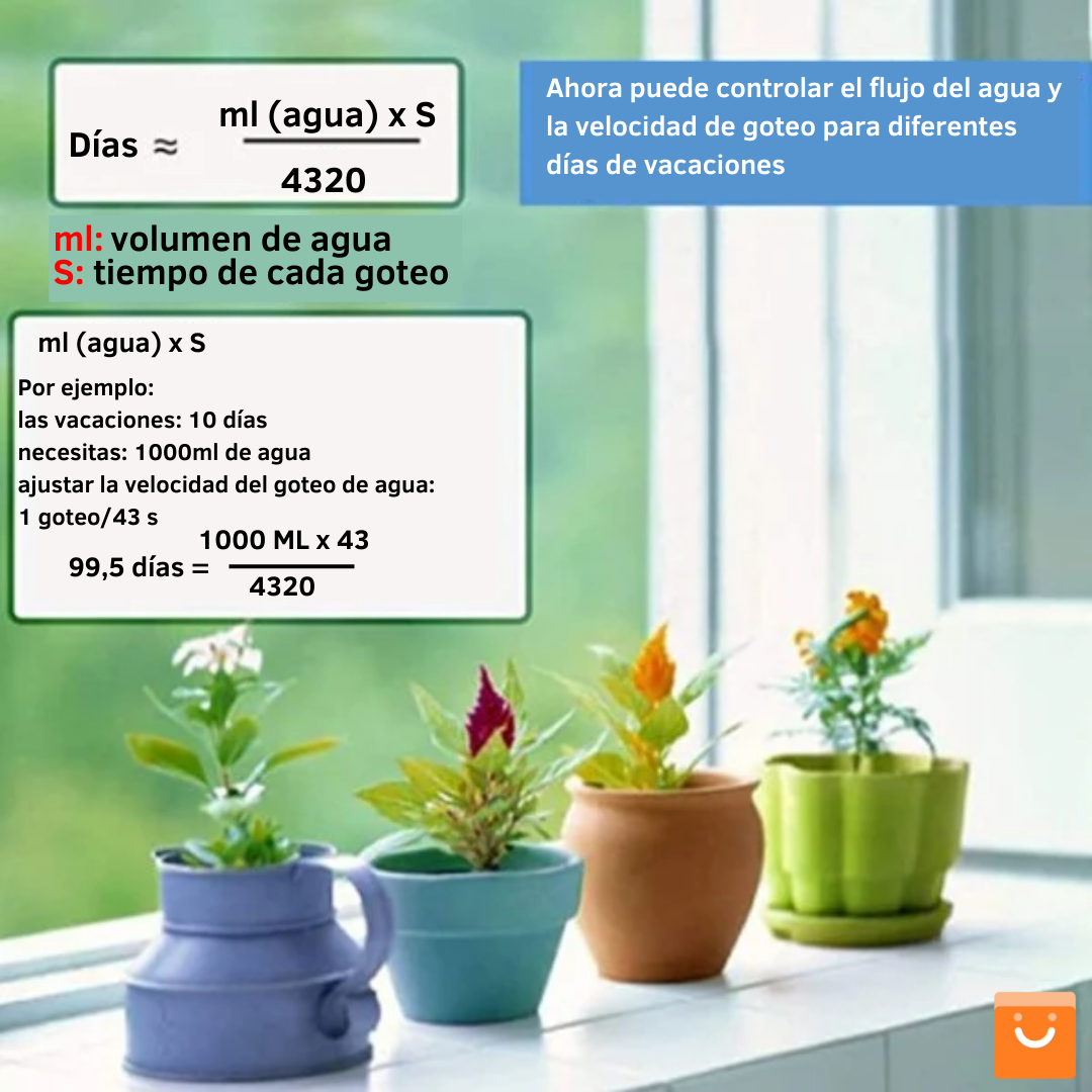 ¡Conoce EasyWater™ Sistema de riego automático y disfruta de tus vacaciones! ¡Puede regar hasta 20 días sin supervisión!